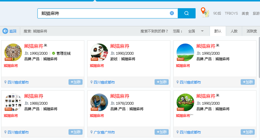 熊猫麻将QQ群搜索结果