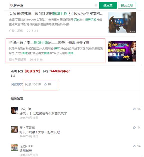 在微信普及率不断增加的今天,三四线城市的地方生活服务类公众号,成了我们父辈获取资讯非常重要的一个渠道。而棋牌游戏不欺老不欺小的游戏特性,决定了我们的父辈也是棋牌游戏的目标客户。而这些地方公众号,对他们来说更是最权威的意见领袖。在一线城市,各种优质原创文章的阅读量可能破千都很困难,而一篇发于地方生活服务类公众号的广告,阅读量都能轻松过万。